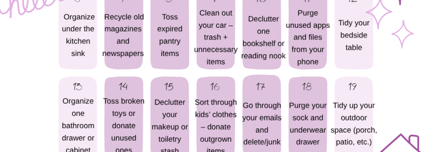 Small, consistent steps can lead to BIG changes. By tackling one simple task each day, you’ll avoid feeling overwhelmed and start seeing results in just the first week. Plus, a clutter-free space supports clearer thinking, less stress, and a more enjoyable home for you and your family.