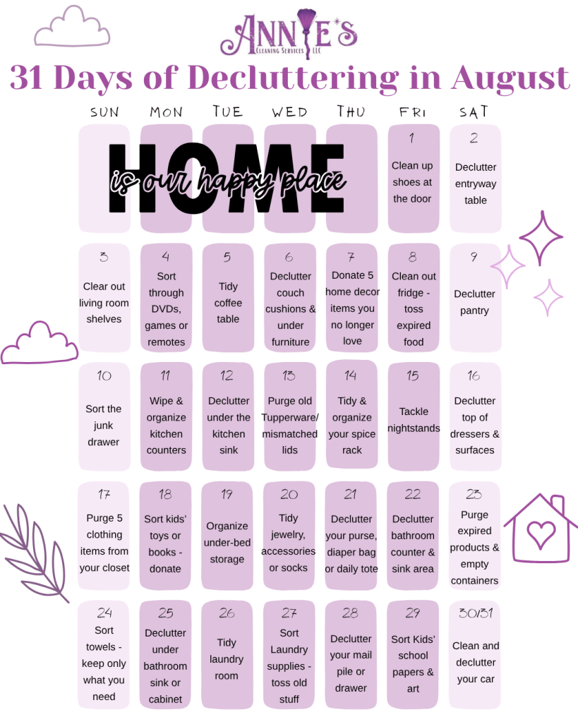Check out our interactive “31 Days of Decluttering in August” calendar below and follow along all month long!