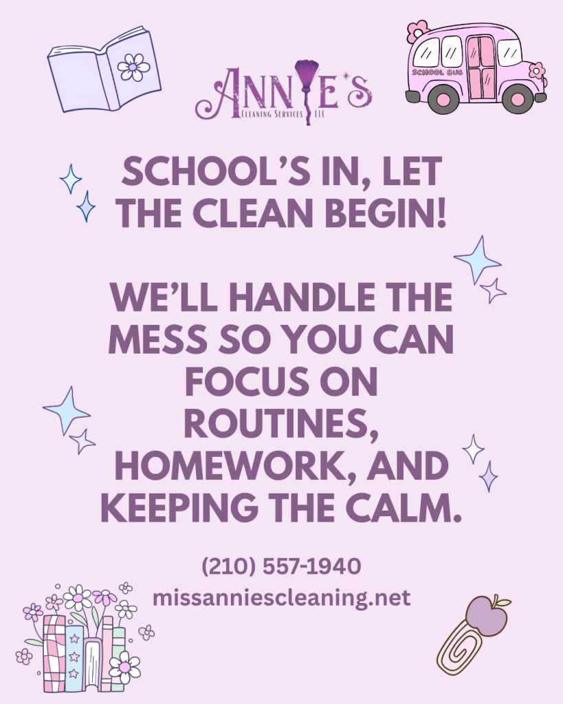 This school year, let Annie’s Cleaning Services take cleaning off your to-do list. Whether you need weekly upkeep or a deep clean to reset your space, our team is here to make life easier.