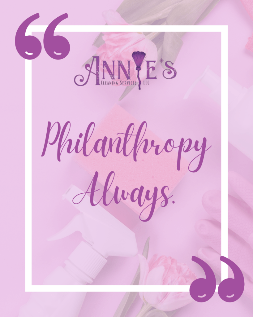 Annie’s motto is “philanthropy always,” and this principle guides every aspect of our operations. We take pride in giving back to the community through various initiatives. From offering numerous free cleans to providing sponsorships for schools and youth programs, we actively contribute to the well-being of the communities we serve.